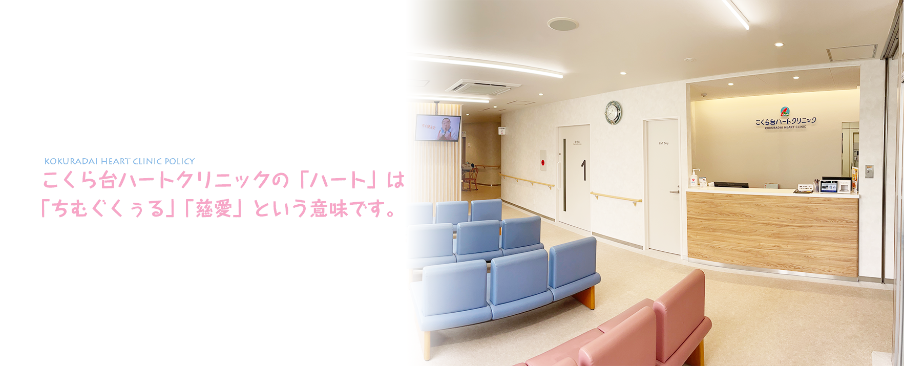 こくら台ハートクリニックの「ハート」は「ちむぐくぅる」「慈愛」という意味です。 我々スタッフ一同は皆さんの健康管理の一助として、心の通った診療を手がけていきます。